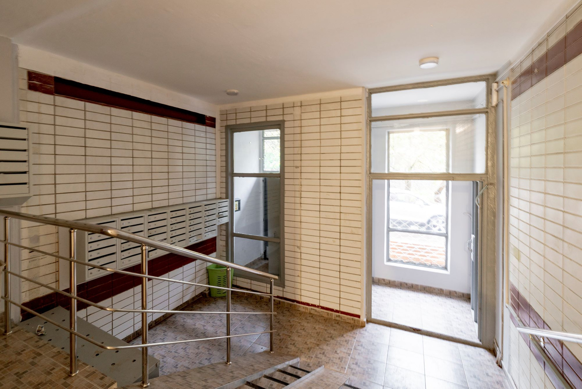 Подъезд, лестничная площадка и тамбур в прекрасном состоянии, что подтверждает бережное отношение к общему имуществу интеллигентных и доброжелательных соседей.