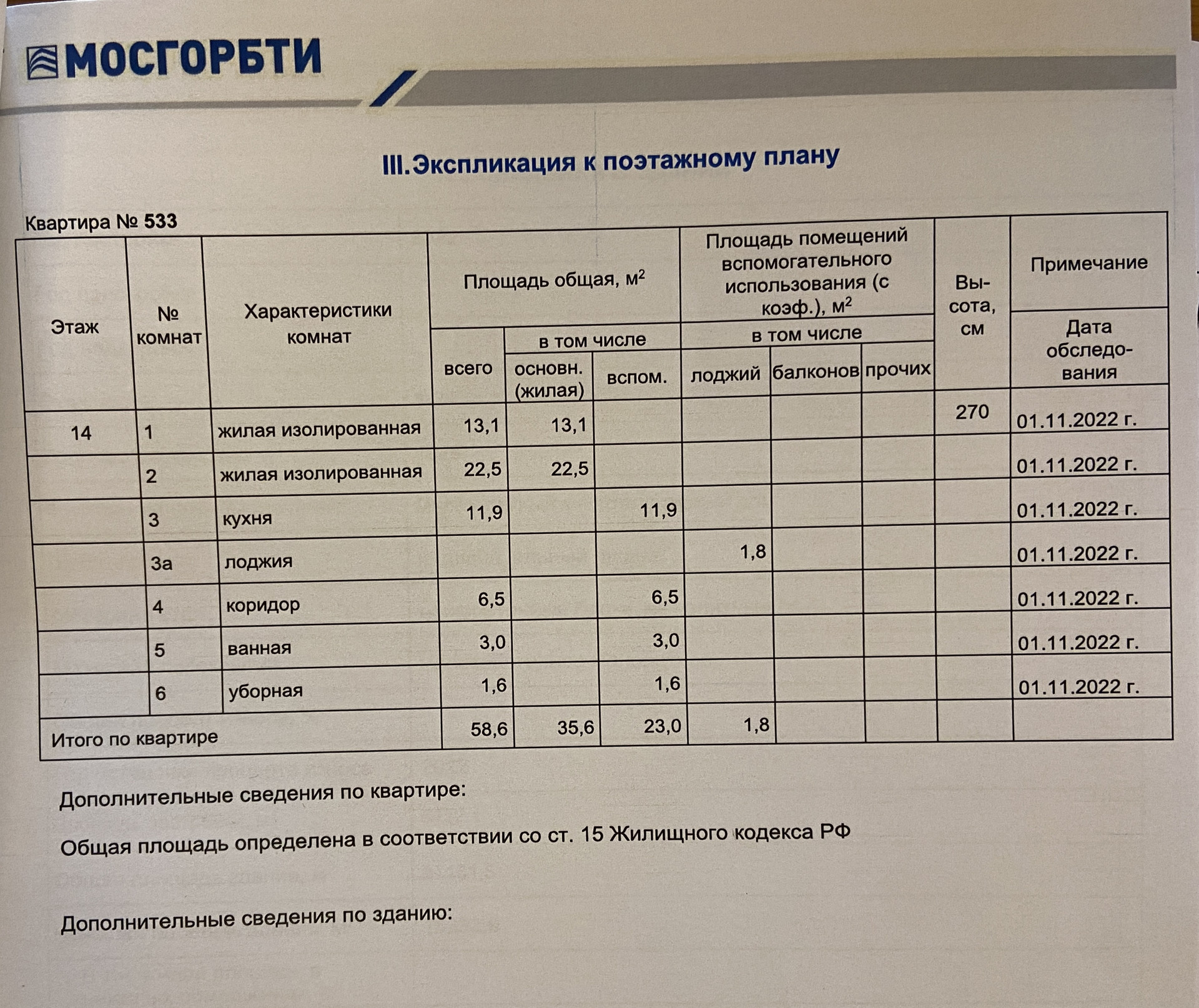 Общая площадь 58.6 м2