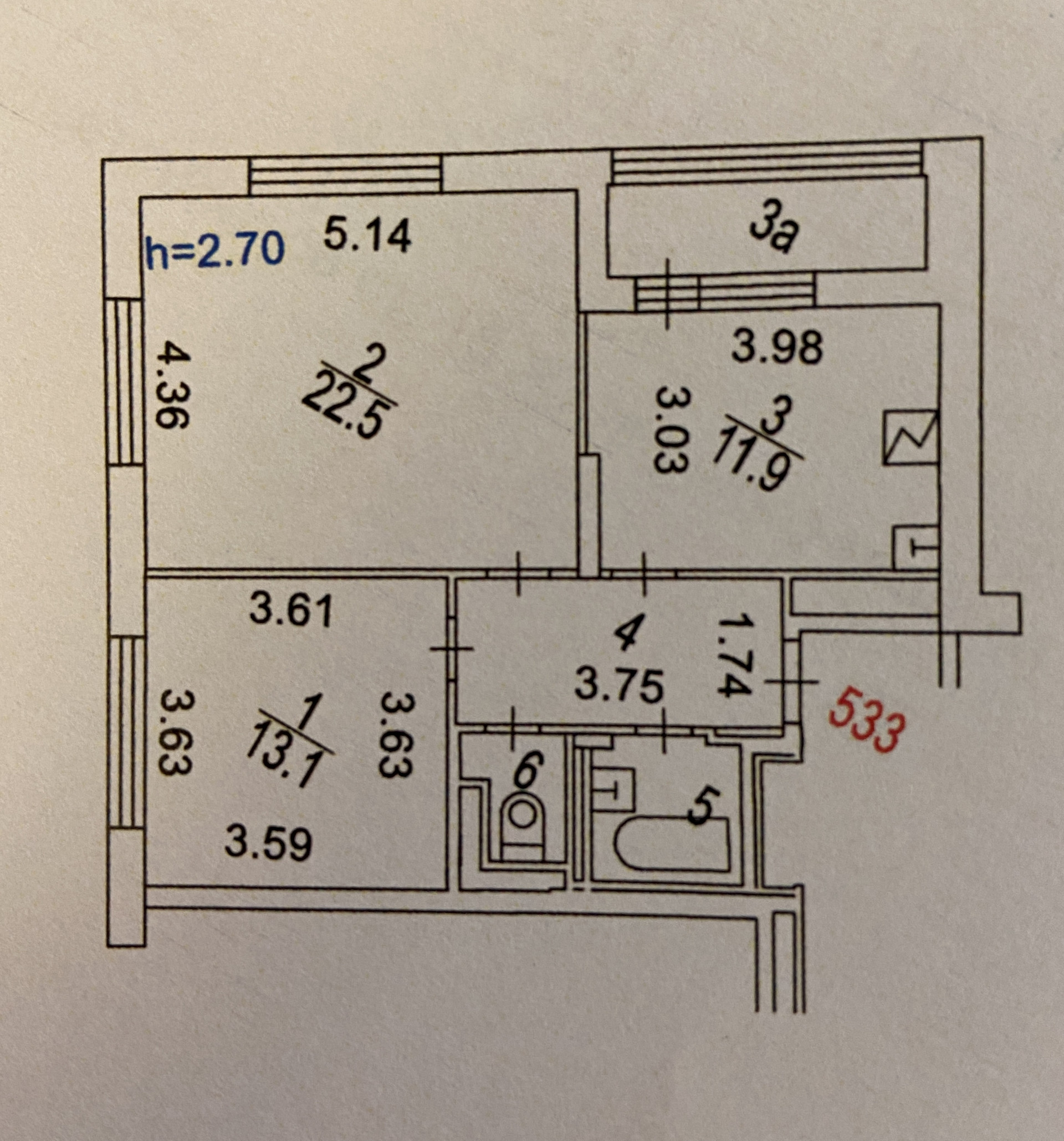 Высота потолков 2.7 м
