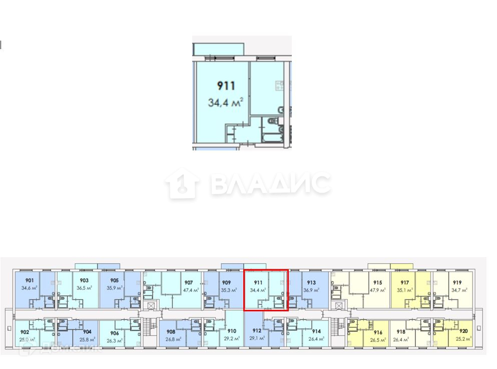 Общая площадь 34.4 м2
