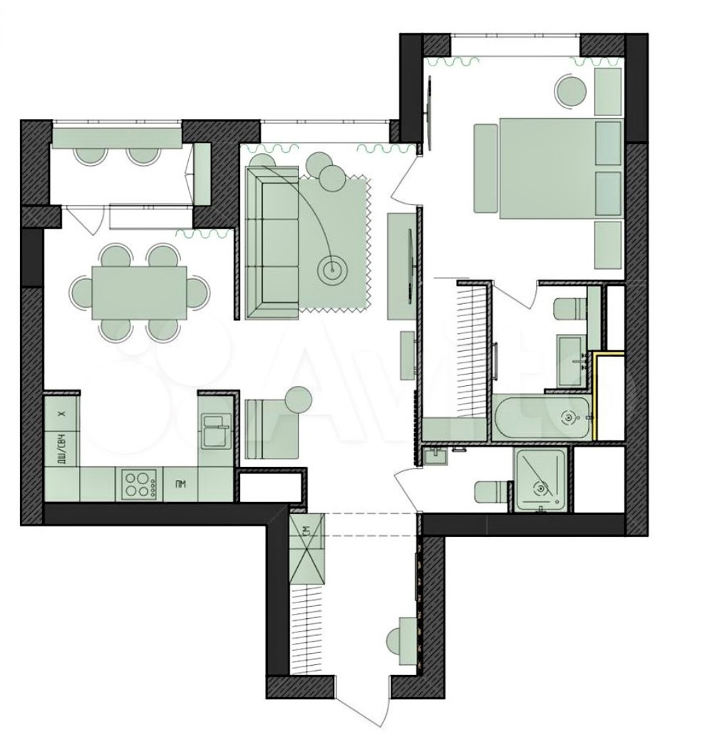 Общая площадь 64 м2