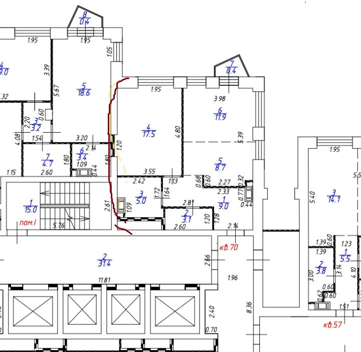 Общая площадь 55.7 м2