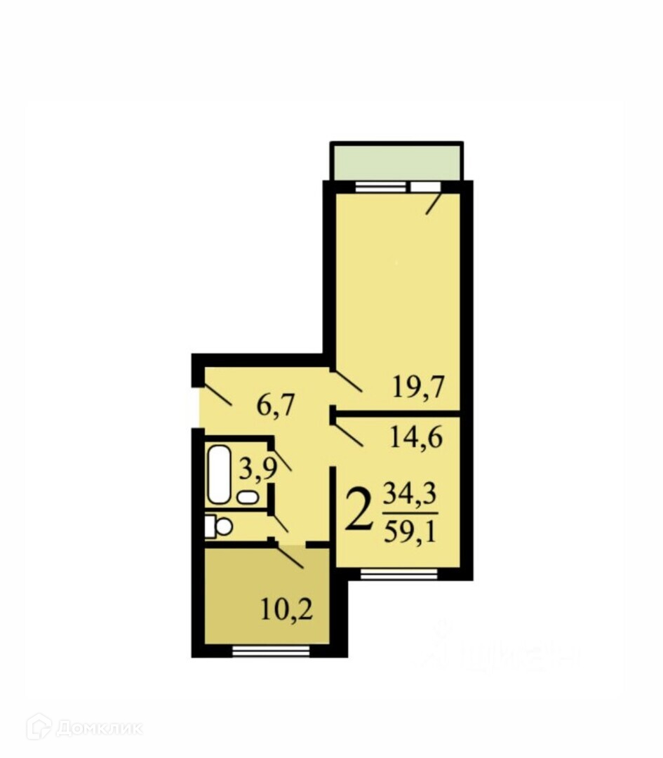 Жилая площадь 34.3 м2