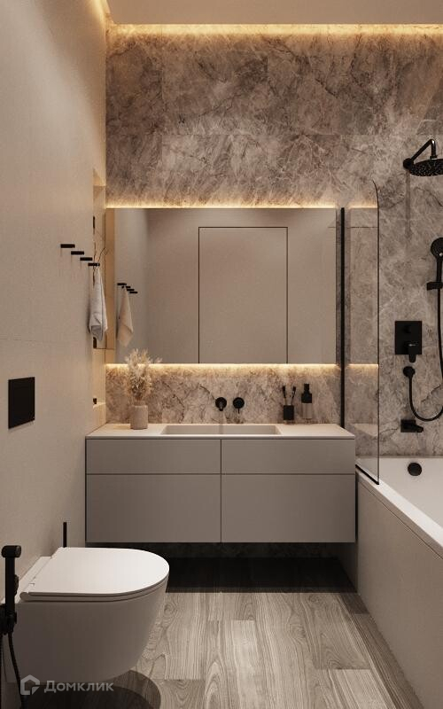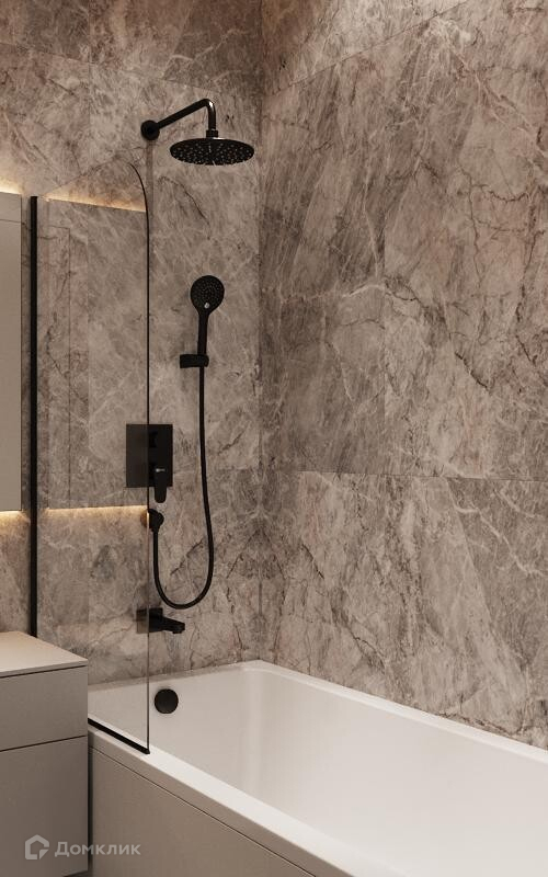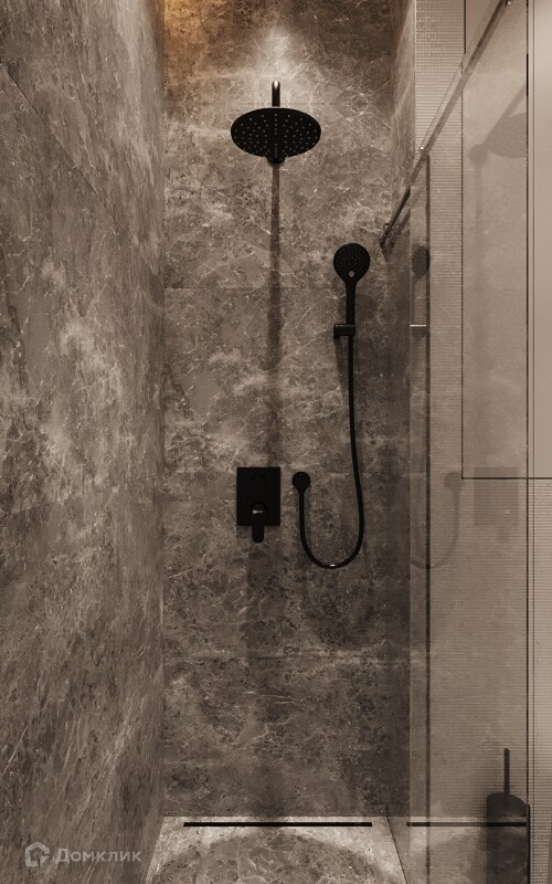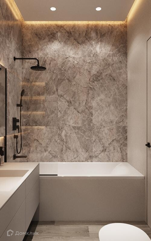 - Керамогранит в двух ванных: пол и стены до потолка
