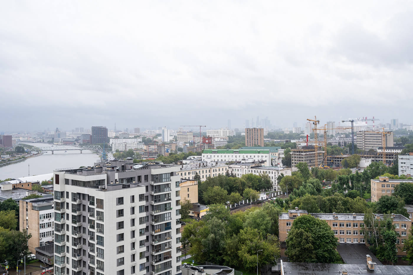 Панорамные окна наполняют пространство светом и открывают красивые виды на реку и центр Москвы