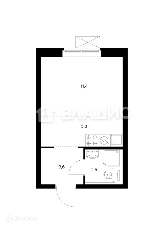Общая площадь 23.3 м2