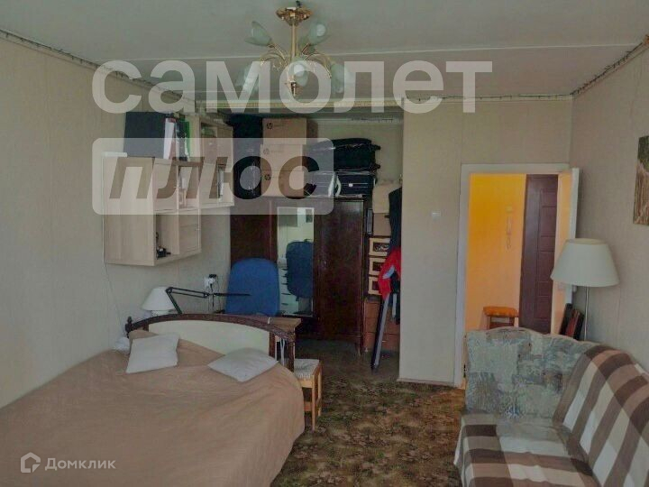 -Мебель в комнате: двухспальная кровать, угловой двухспальный диван, шкаф. В прихожей встроенный шкаф.