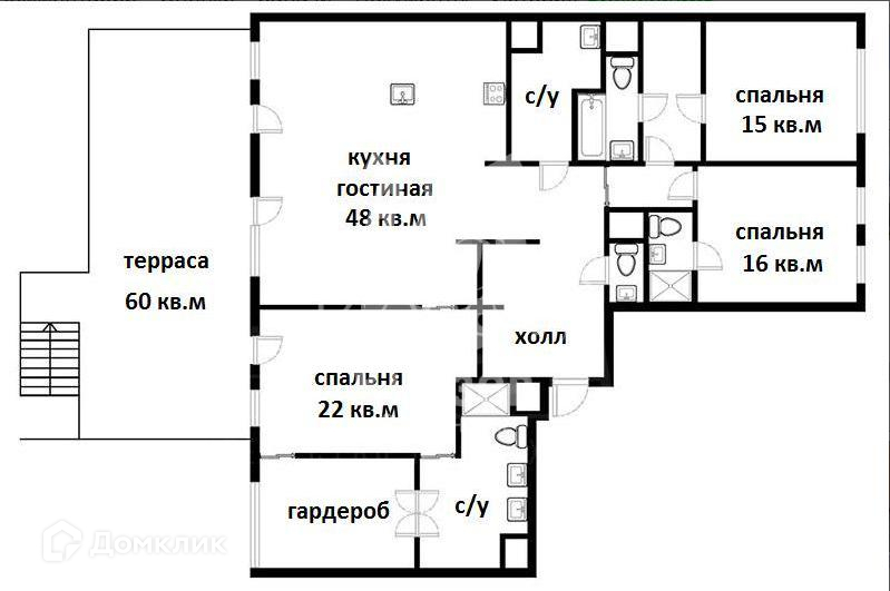 Свободное планировочное решение позволяет реализовать любые идеи. Для комфортной визуализации пространство имеется готовое решение по зонированию: 3 полноценных спальни со своими гардеробными и сан/узлами, просторная зона кухни-гостиной с выходом на террасу.