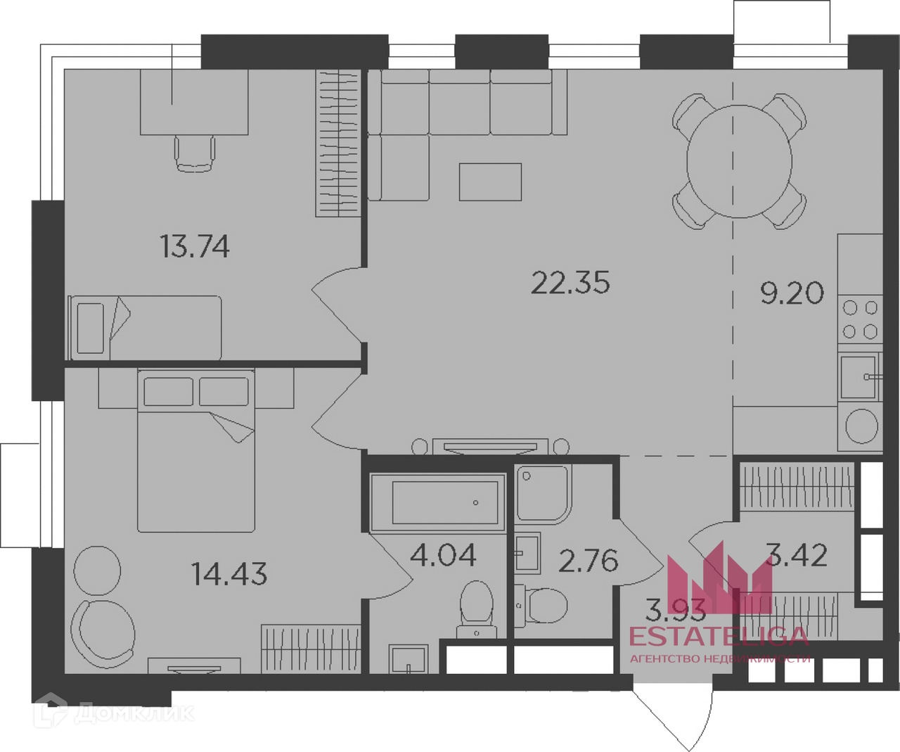 Общая площадь 74 м2