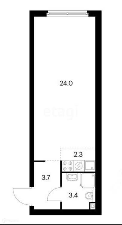 Общая площадь 33.4 м2
