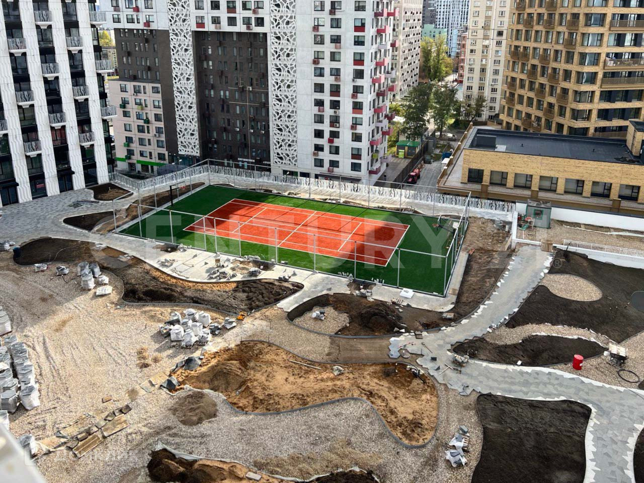 Свой парк на уровне 4 этажа на кровле стилобата, с прогулочными зонами.