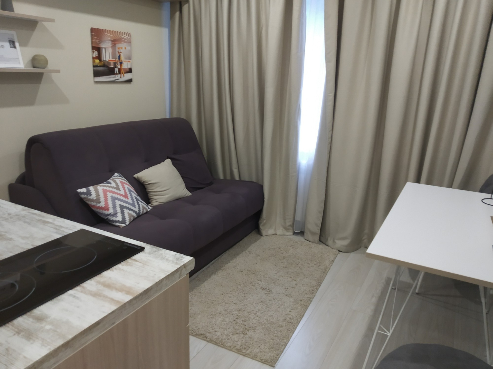 Новостройка с ремонтом от застройщика, оборудованным санузлом и московской пропиской, в 5 минутах пешком от метро Кузьминки. Большое окно, высокий первый этаж, так как есть этаж ниже коммерческий. Отличный парк Кузьминки в пешей доступности, несколько детских площадок, развитая инфраструктура, 20 мин. до центра города. Завози мебель и живи!