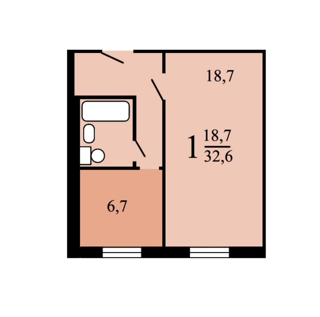 Общая площадь 32.5 м2