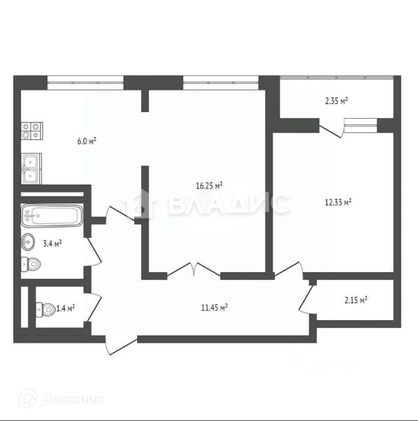 Общая площадь 58.4 м2