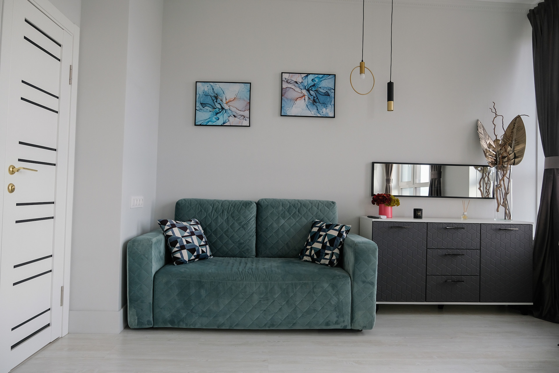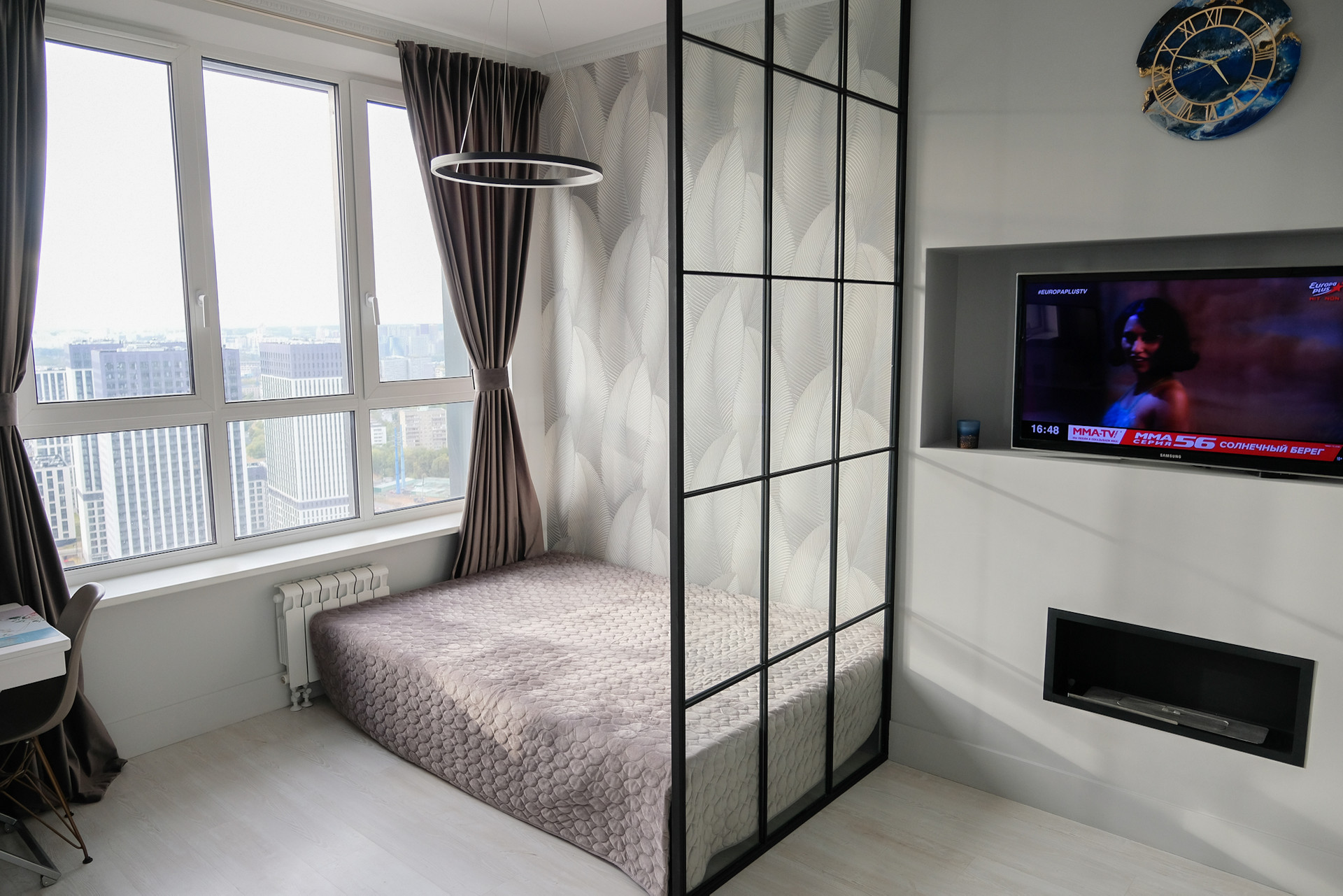 В квартире выполнен качественный дизайнерский ремонт, с теплыми полами. Установлен камин с живым огнем, кондиционер, телевизор, холодильник, варочная поверхность, стиральная машина, микроволновая печь, вся техника новая. Квартира меблирована, установлен шкаф купе, стеллаж, пуф, кухонный гарнитур с раковиной и смесителем, мраморное пано, диван Moon, кровать, раскладной стол, стулья, комод, дизайнерский свет (люстры, подвесы, точечные светильники, светодиодная подсветка), декор. Установлена ванна, раковина, тумба под раковину, парящие зеркало, инсталляция. Все материалы для ремонта высокого качества, отделочные материалы из Мастер Дома. Все чеки и гарантия есть.