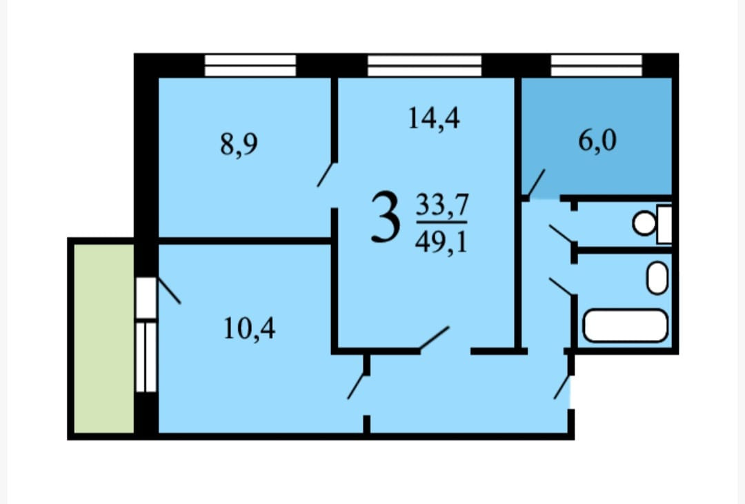 3-комнатная квартира, 50 м2, этаж 3 / 9, на продажу в Москве, Челюскинская улица, 6к1