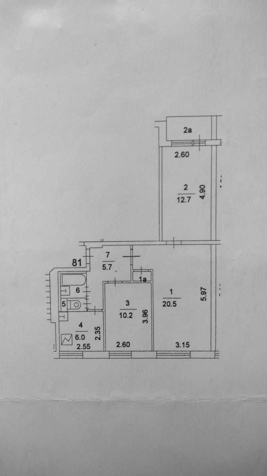 Общая площадь 58.6 м2