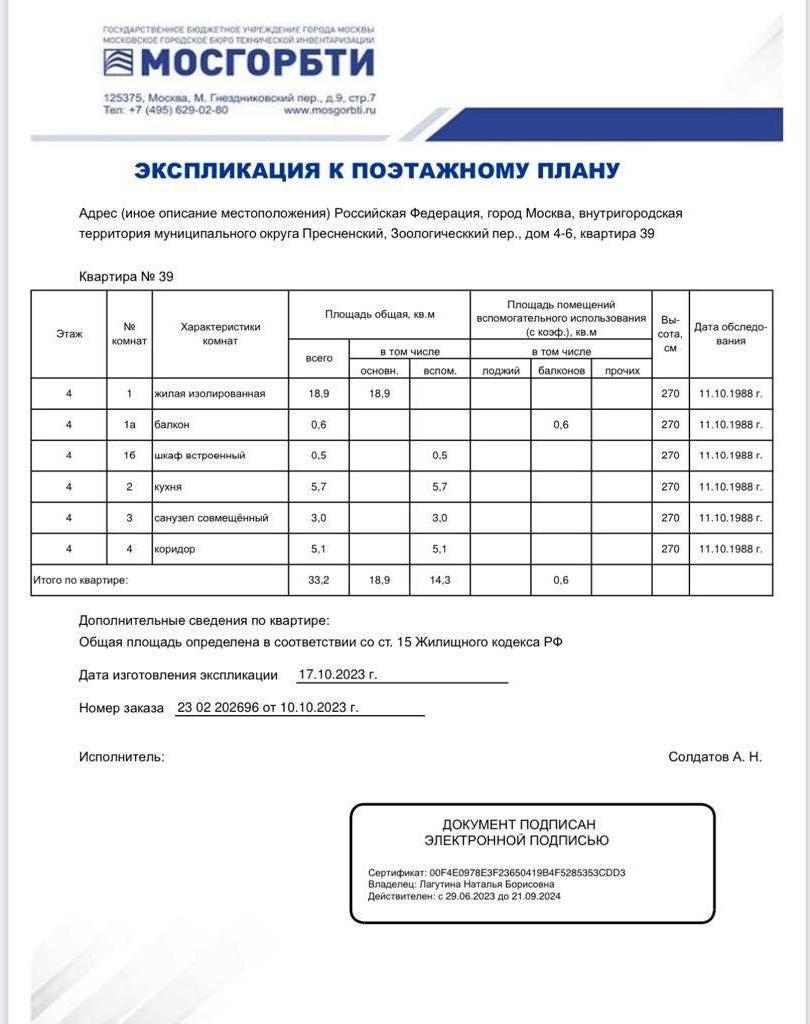 1-комнатная квартира, 33.2 м2, этаж 4 / 5, на продажу в Москве, Зоологический переулок, 4-6