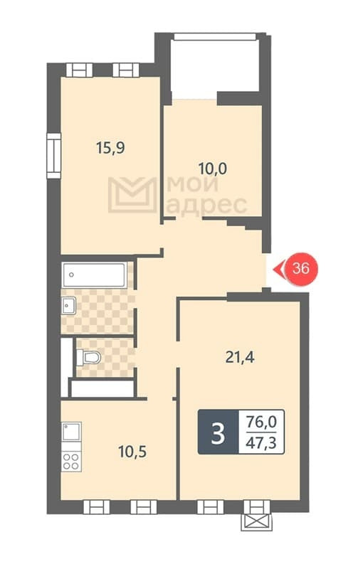 Общая площадь 76 м2