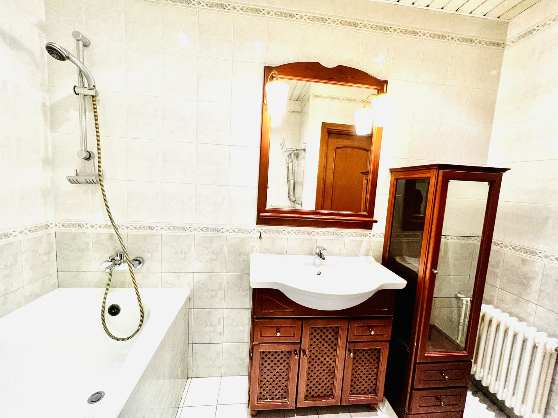Санузел раздельный, большая ванная комната. Установлен проточный водонагреватель на случай профилактического отключения горячей воды.