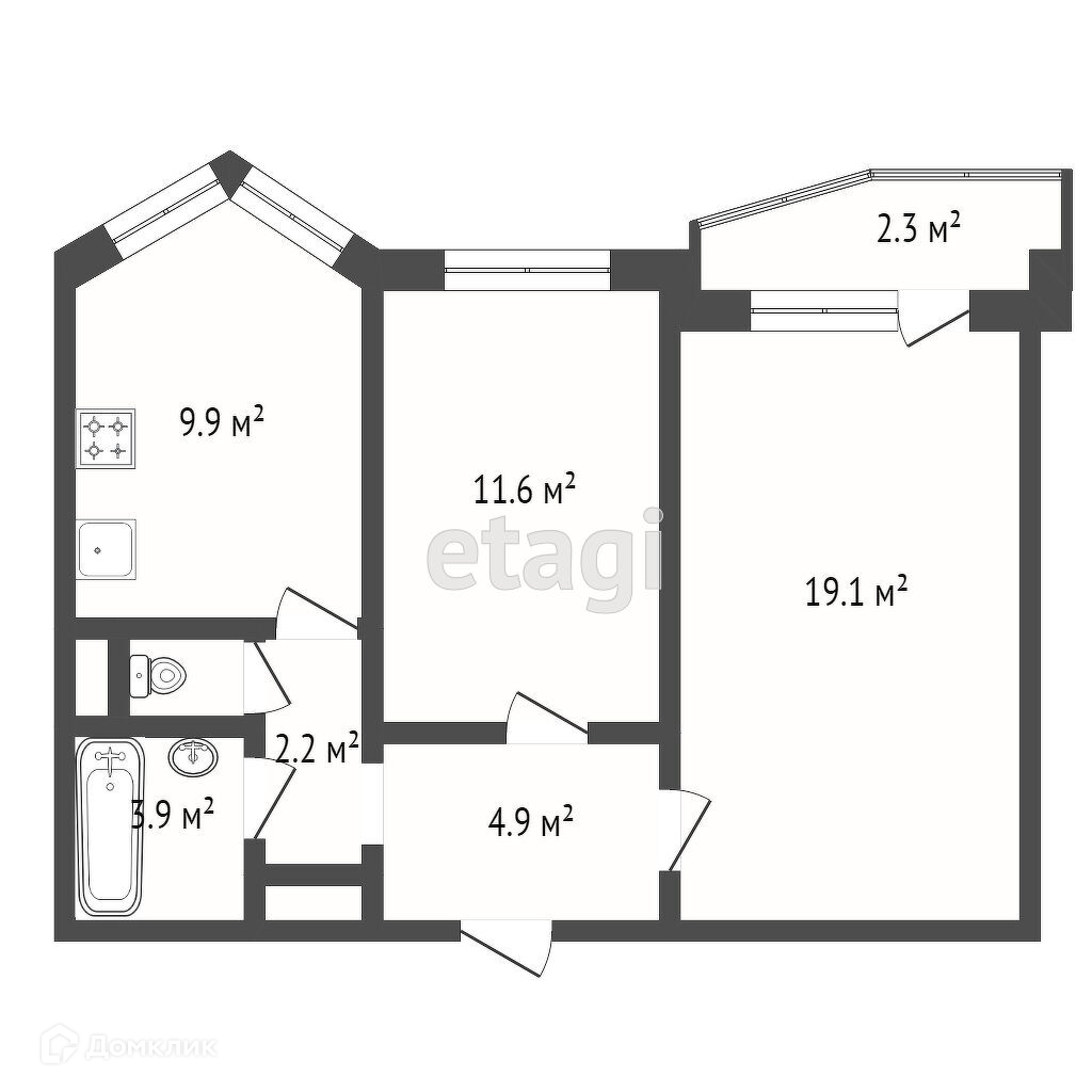 Общая площадь 50.1 м2