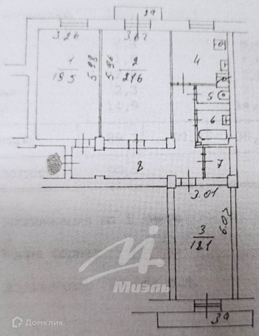 Жилая площадь 59.2 м2