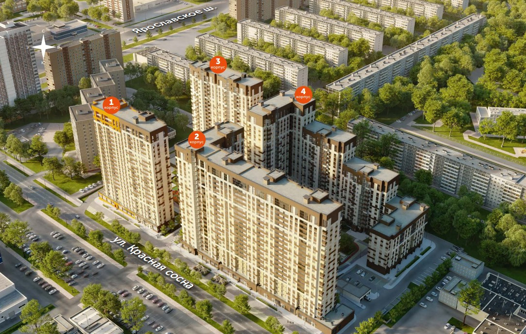 ЖК «НАСТРОЕНИЕ» - это жилой комплекс класса «Комфорт +», специально спроектированный с переменной этажностью - в его составе четыре корпуса от 8 до 22 этажей. Перепады высотности продуманы так, чтобы обеспечивать жителям верхних этажей вид на парк «Лосиный остров», вход в который начинается всего в 400 метрах от дома «НАСТРОЕНИЕ».