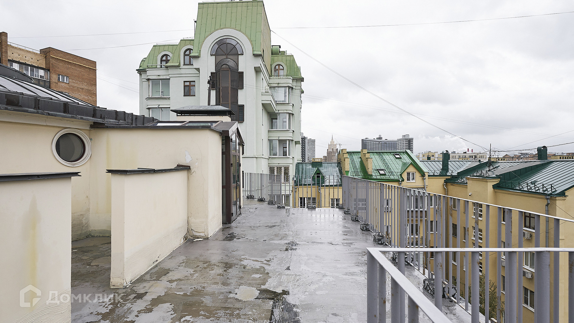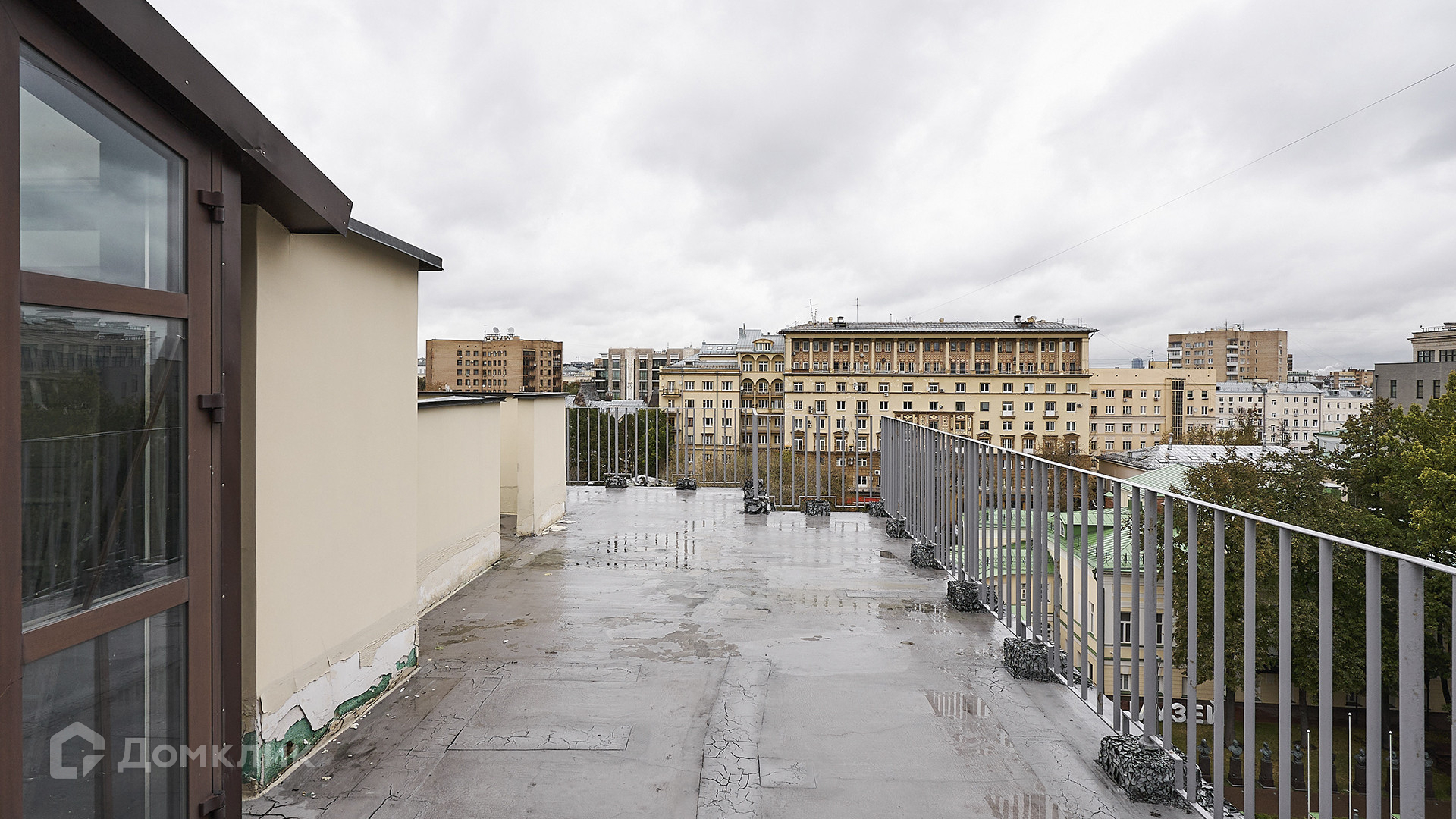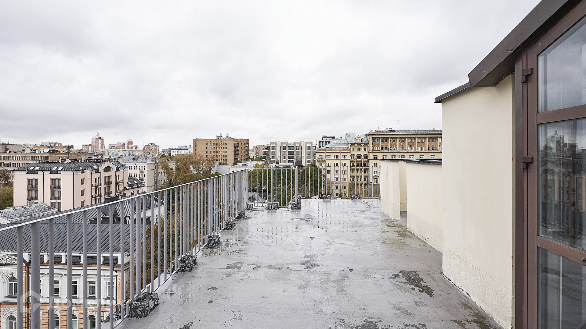 ID 231 012. Двухуровневый пентхаус с просторной террасой в комплексе премиум-класса «Большая Никитская, 45» в историческом центре Москвы. Квартира без отделки расположена на 6-м этаже, жилая площадь 455 м² и открытая терраса 180 м². Планировкой предусмотрено: 5 спален, кухня-гостиная, столовая, 4 санузла, гардеробные, постирочная. На первом уровне 29 витражных окон, из каждой спальни спроектирован выход на балкон. Второй свет — куполообразная крыша, панорамное остекление со стороны зала, 6 круглых окон со стороны галереи и 2 выхода на балкон. Высота потолков от 2,7 до 3,95 метра.