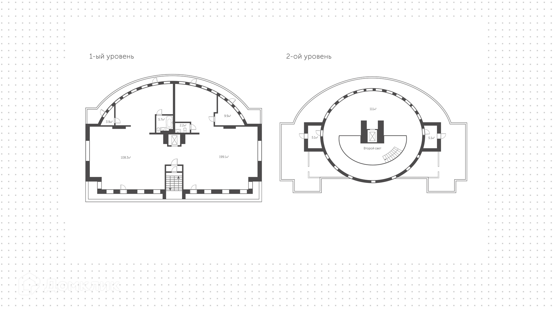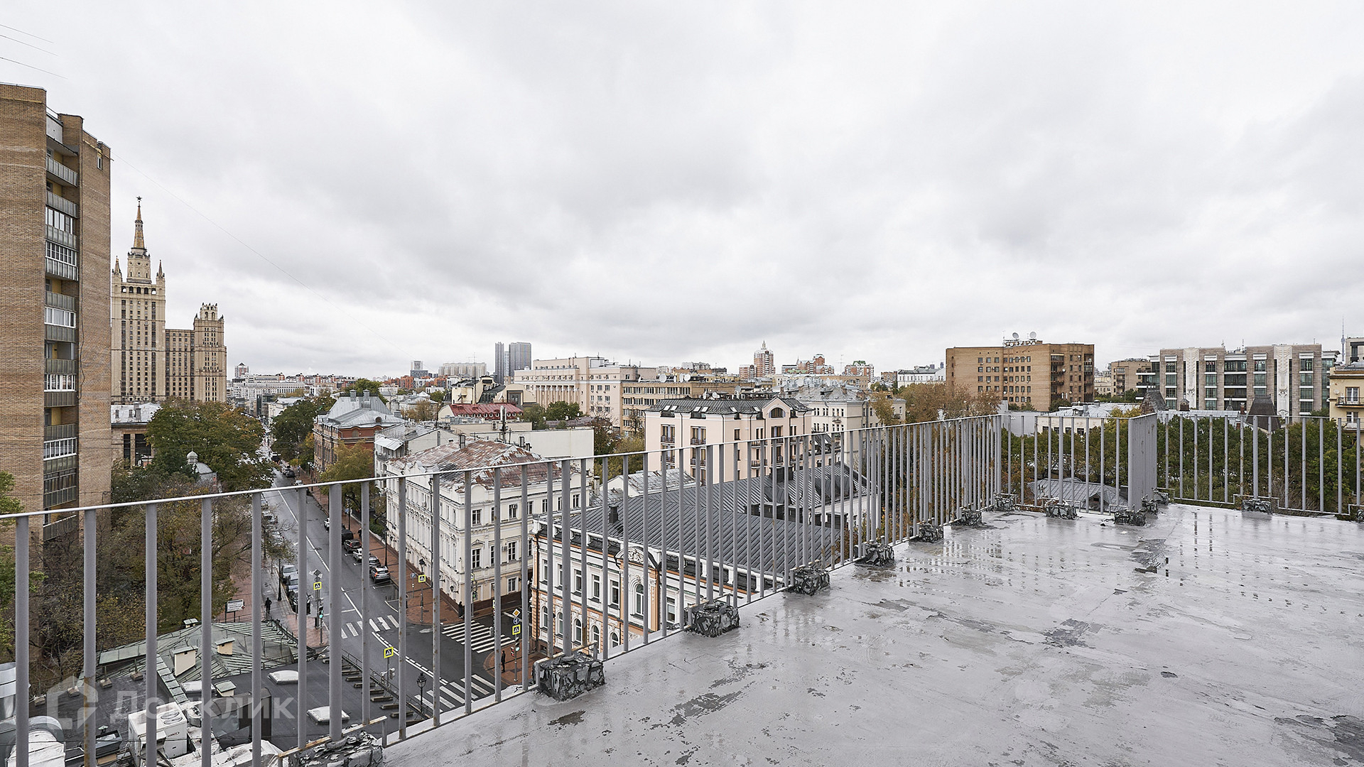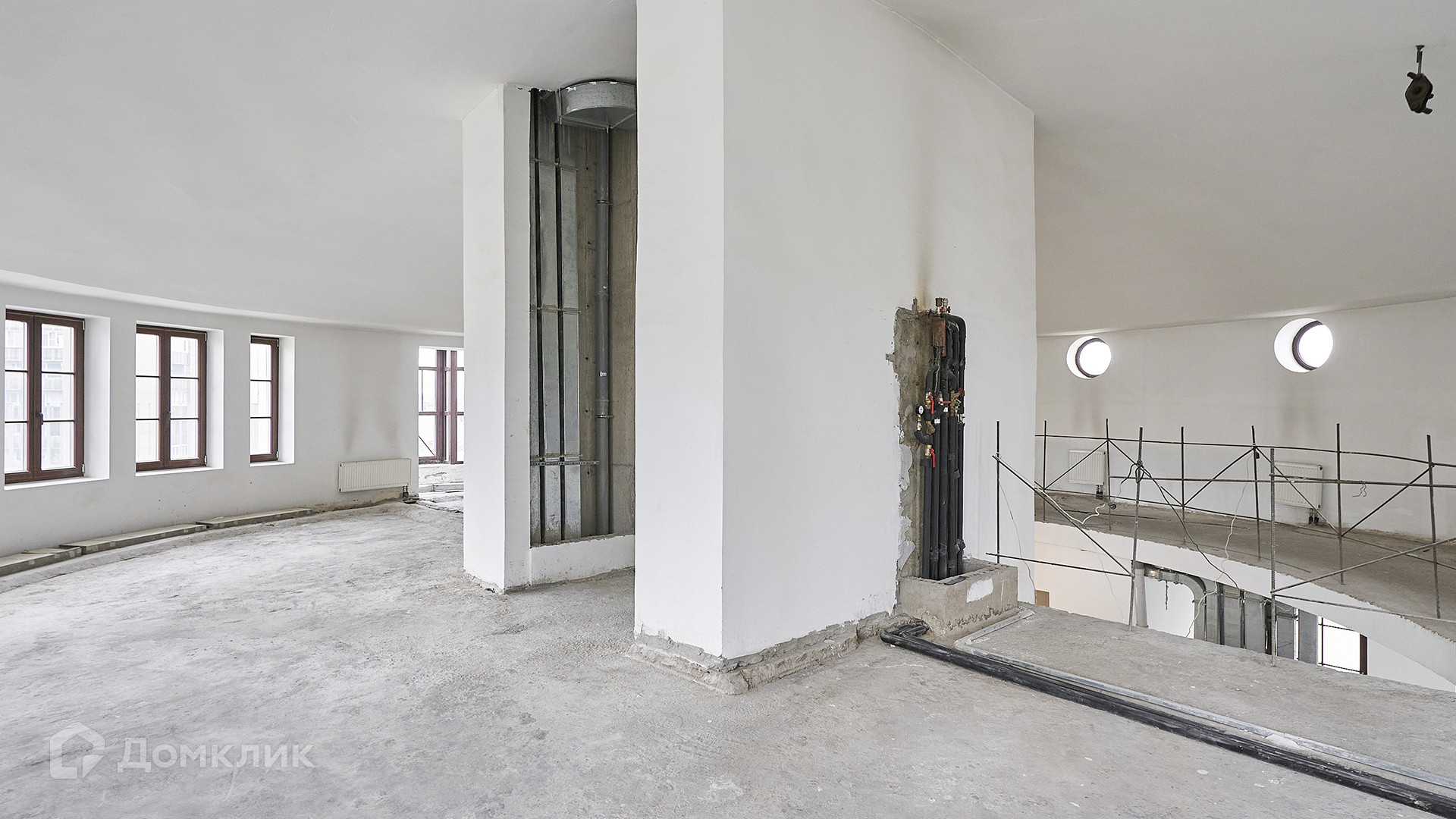 ID 231 012. Двухуровневый пентхаус с просторной террасой в комплексе премиум-класса «Большая Никитская, 45» в историческом центре Москвы. Квартира без отделки расположена на 6-м этаже, жилая площадь 455 м² и открытая терраса 180 м². Планировкой предусмотрено: 5 спален, кухня-гостиная, столовая, 4 санузла, гардеробные, постирочная. На первом уровне 29 витражных окон, из каждой спальни спроектирован выход на балкон. Второй свет — куполообразная крыша, панорамное остекление со стороны зала, 6 круглых окон со стороны галереи и 2 выхода на балкон. Высота потолков от 2,7 до 3,95 метра.
