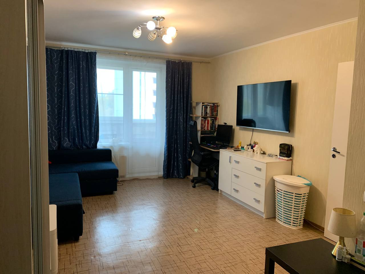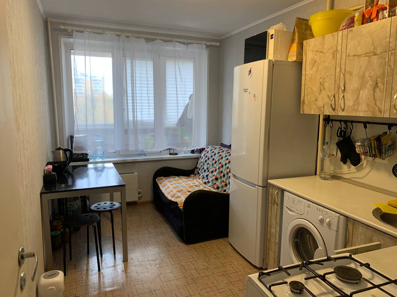 Квартира с косметическим ремонтом и всей необходимой для проживания бытовой техникой - холодильник, плита, стиральная машина. Просторный застекленный балкон с панорамным видом на зеленый двор, детскую и спортивную площадки.