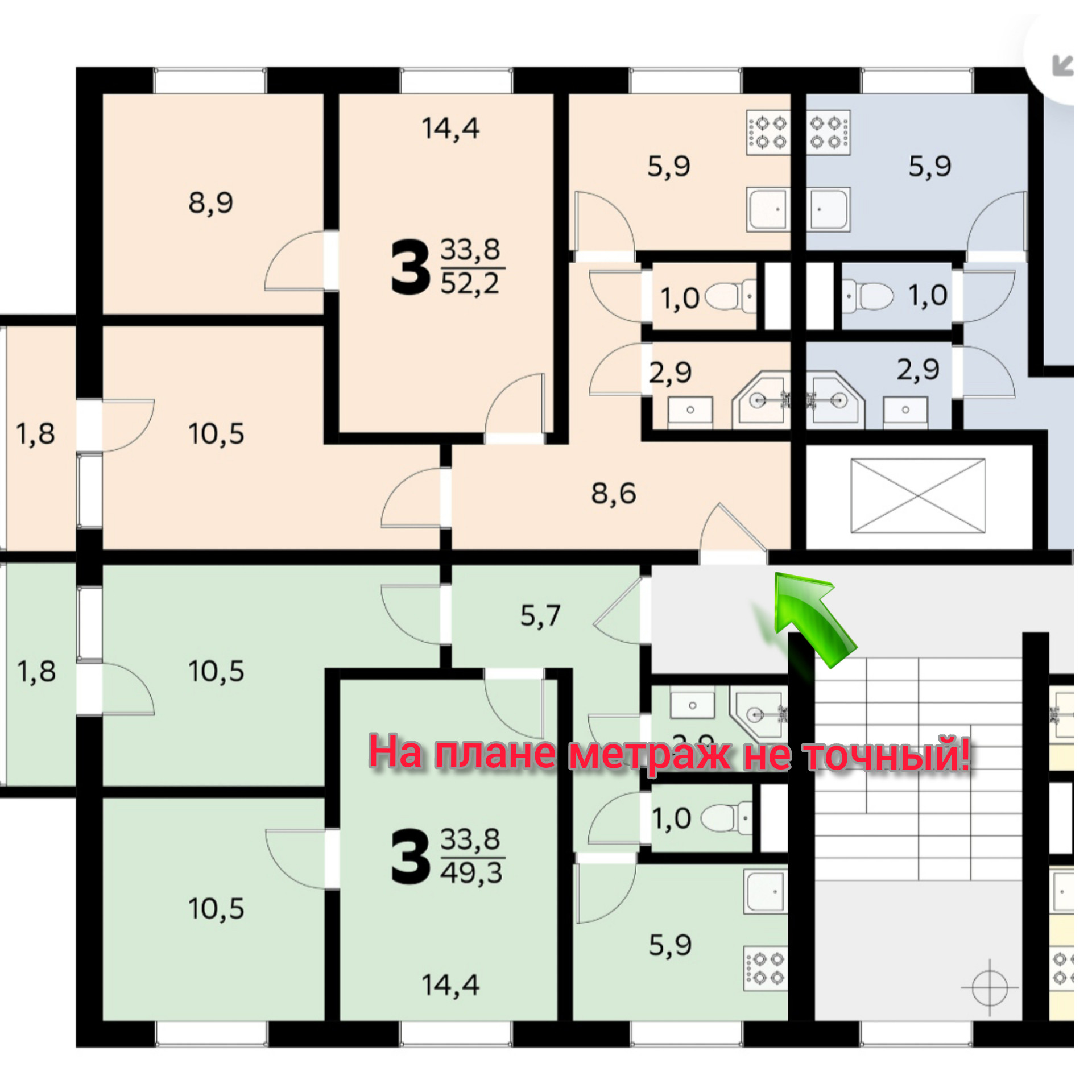 Общая площадь 51.4 м2