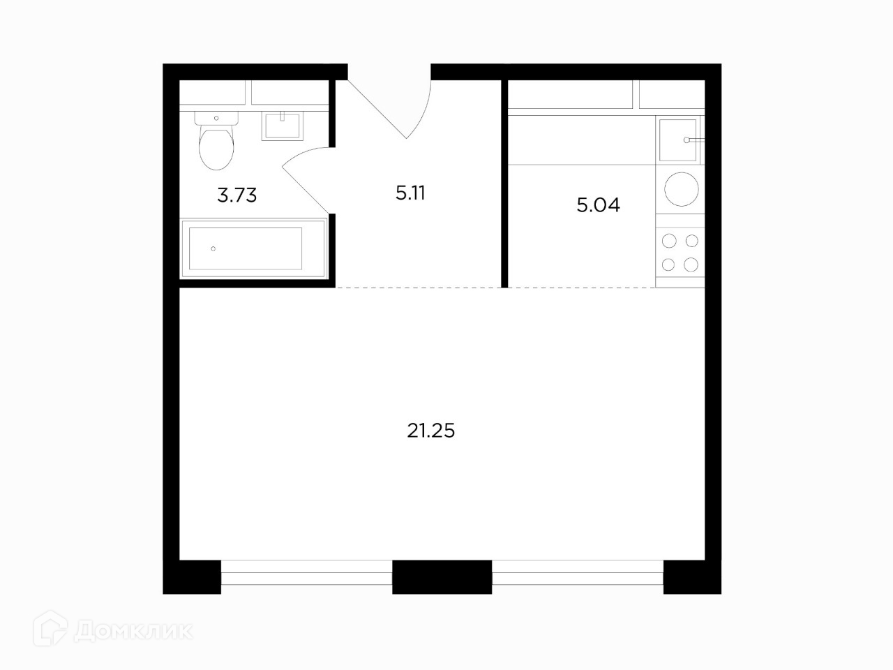 Общая площадь 34.9 м2