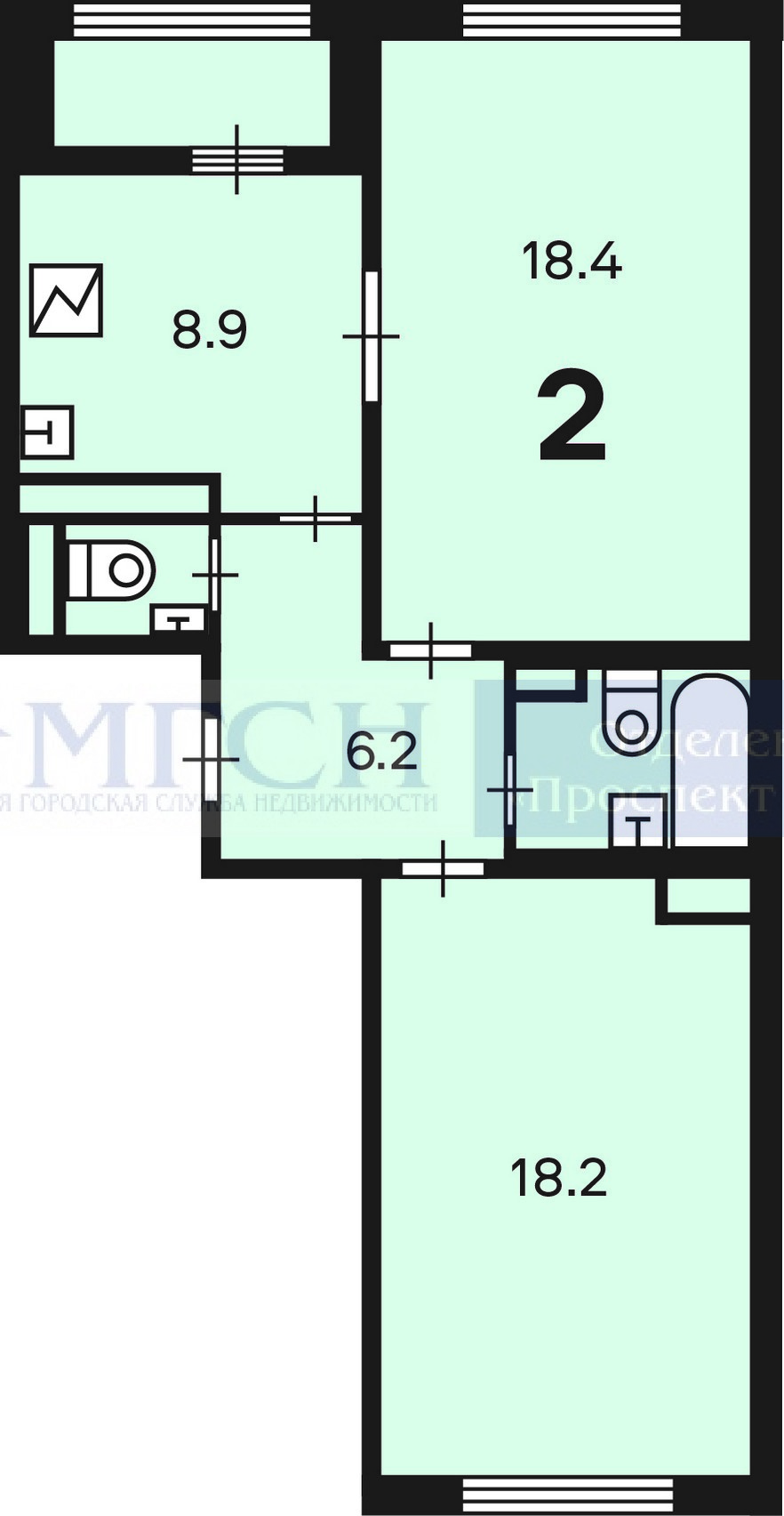 Количество комнат 2