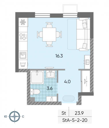 Общая площадь 23.9 м2