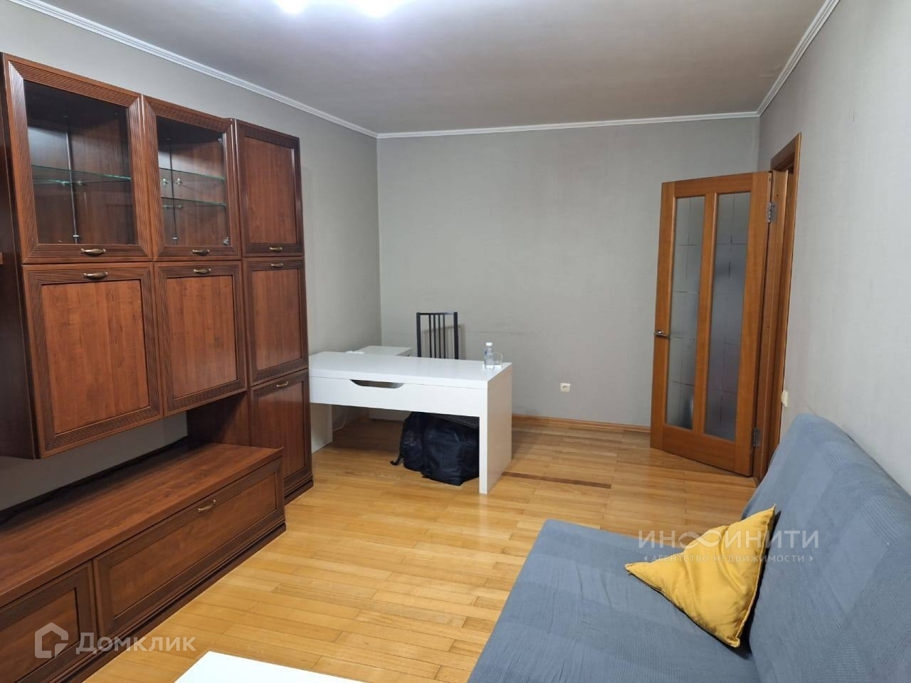 2 жилые, изолированные комнаты 19м и 9м, кухня 6 м, вся мебель остается новым владельцам - стенка в зале, шикарная кровать в спальне, шкаф-купе в прихожей, кухонная мебель с посудомоечной машиной на кухне, стиральная машина, обустроенный тамбур. Соседи тихие и доброжелательные.