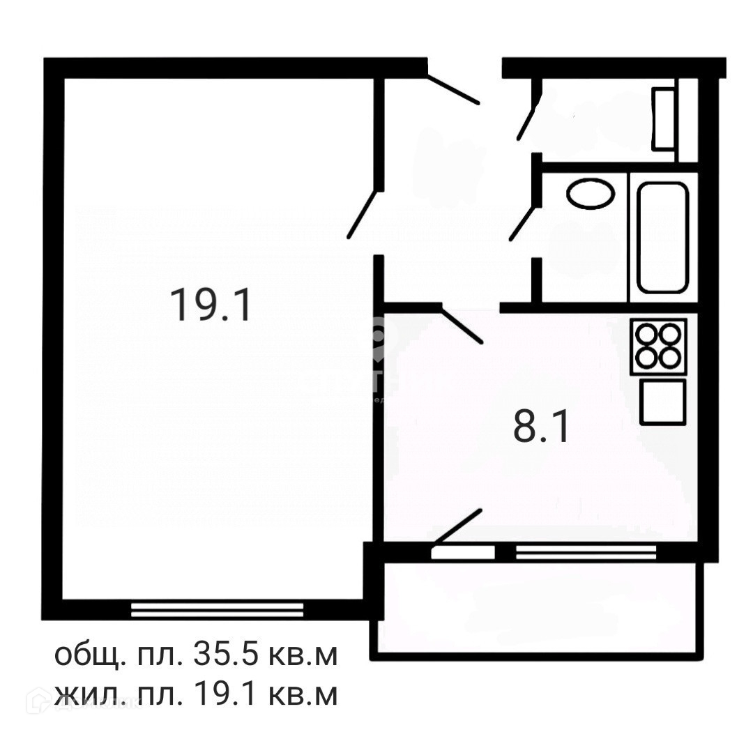 Общая площадь 35.5 м2