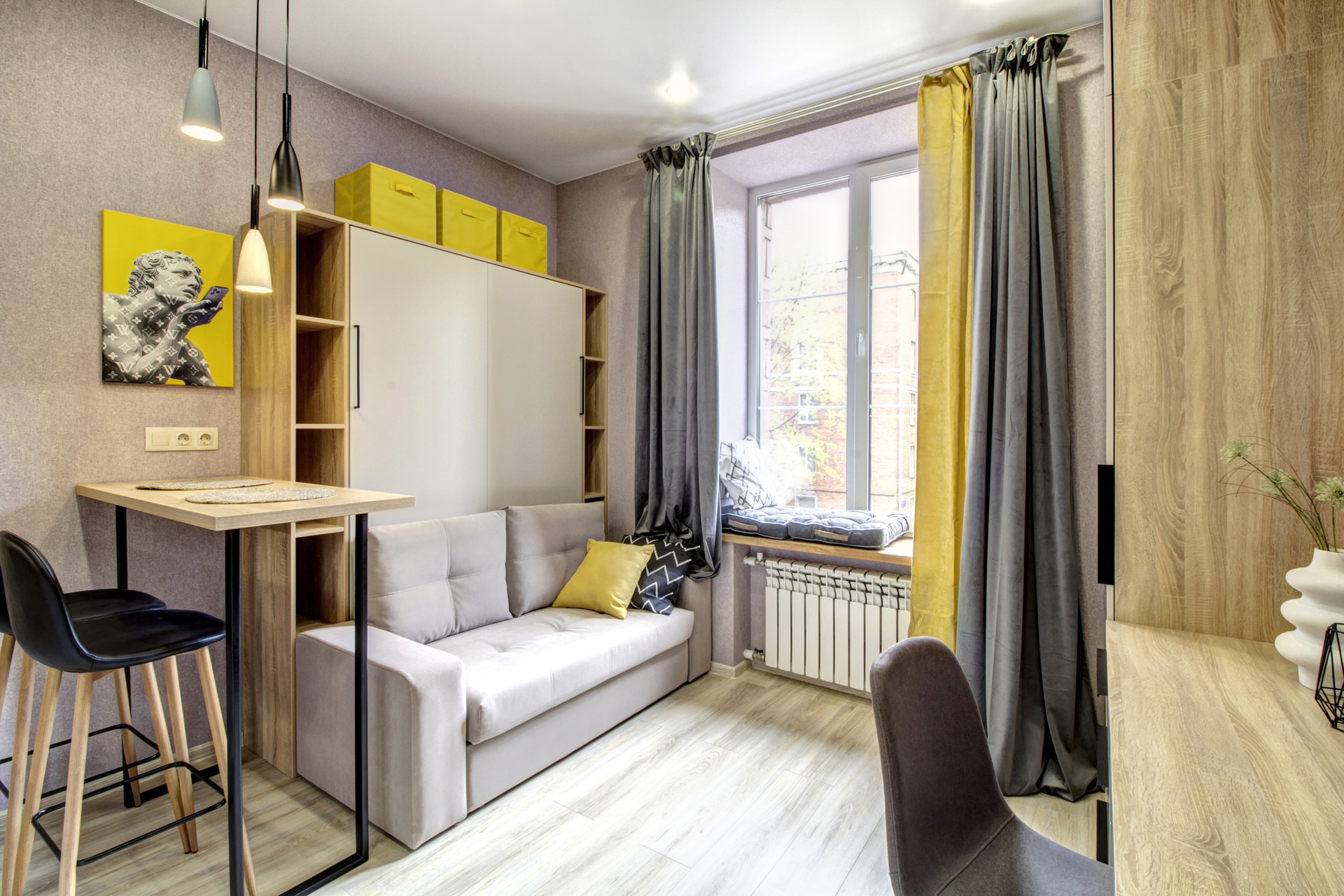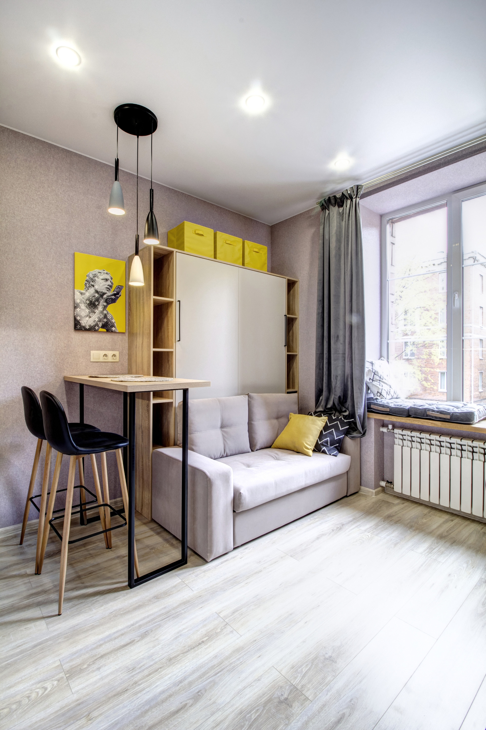 ЖК Турист.  Фото настоящие, ремонт уже полностью готов, можно жить. Студия с новым авторским евро ремонтом. Идеально организованное пространство, продуманная система хранения. Встроенная мебель сделана на заказ. Потолки 3 метра. Один взрослый собственник. В здании закончен капитальный ремонт, все коммуникации заменены, новые стеклопакеты, проведен ремонт на этажах.