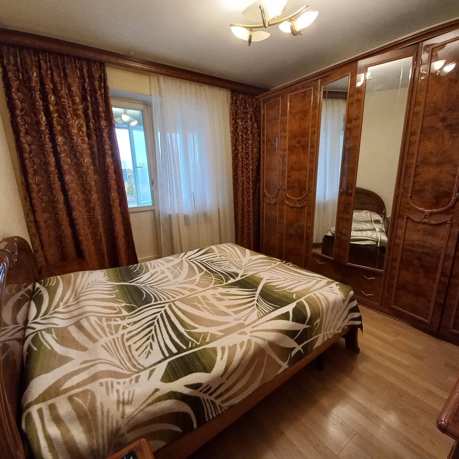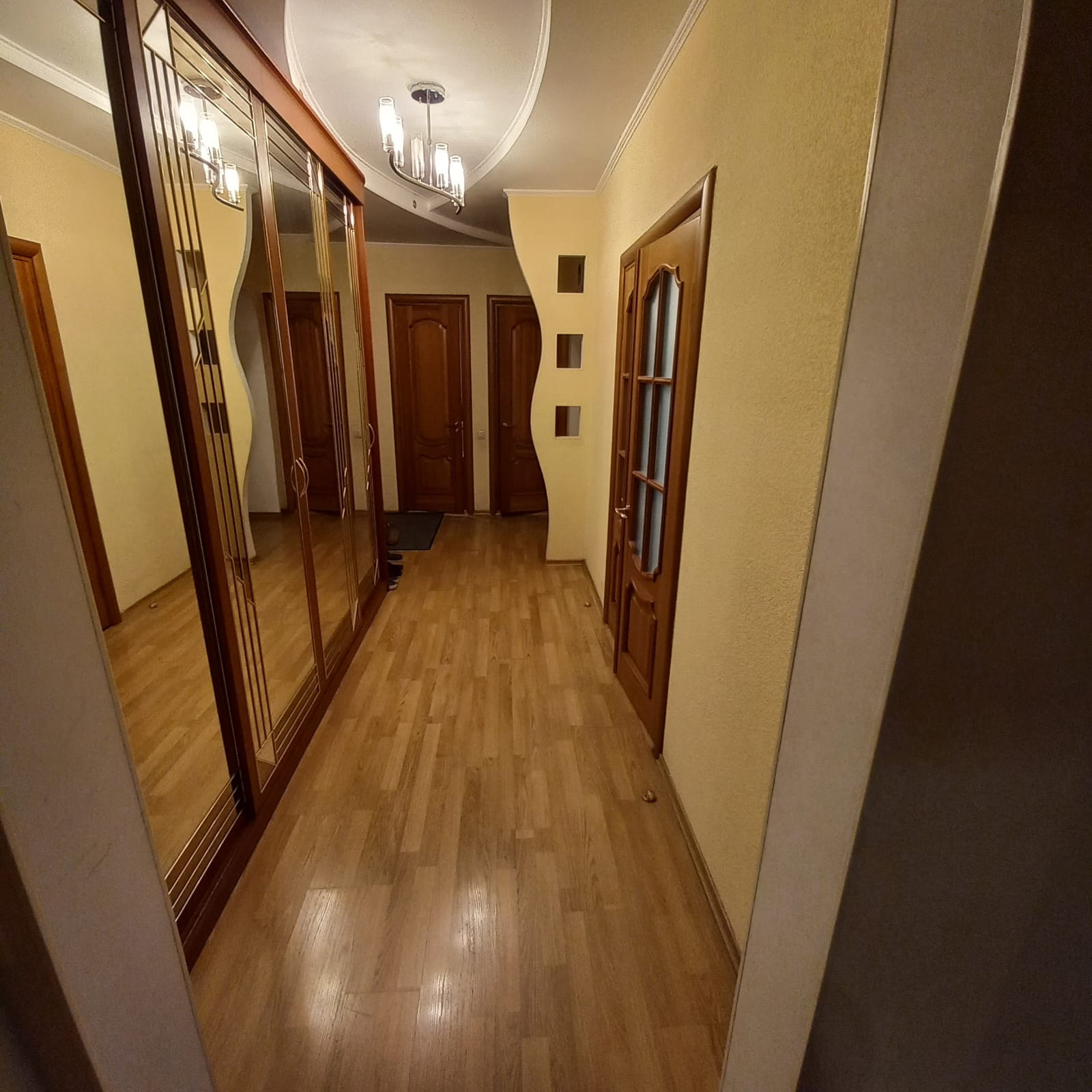 В квартире ремонт в классическом стиле, площадь без учета лоджий -70,6 кв.м., две изолированные комнаты - зал с эркером, спальня - с лоджией, просторная прихожая, большая кухня с выходом на лоджию, два раздельных санузла и кладовая комната.