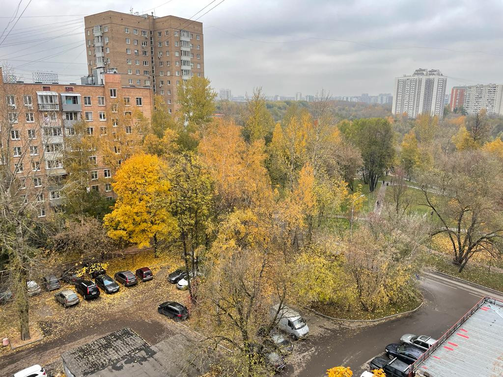 Красивый вид из окон на пойму реки Яуза и парк.
