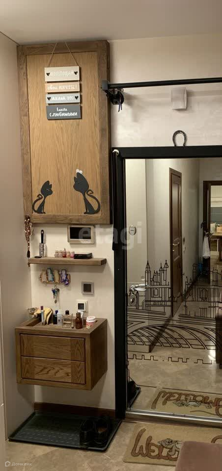 Квартира находится в отличном состоянии, ремонт и производство мебели произведены под строгим надзором дизайнера. Входная группа комплекса современная и презентабельная, имеется видеонаблюдение и охрана. Есть подземный паркинг.