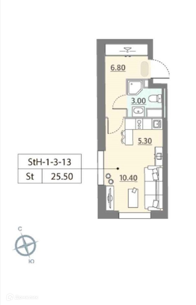 Общая площадь 26 м2