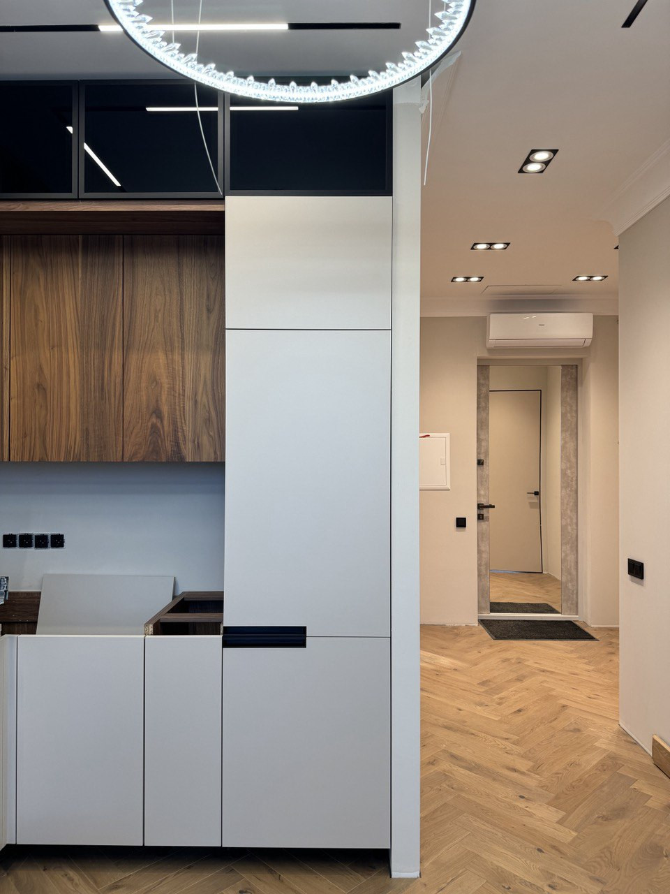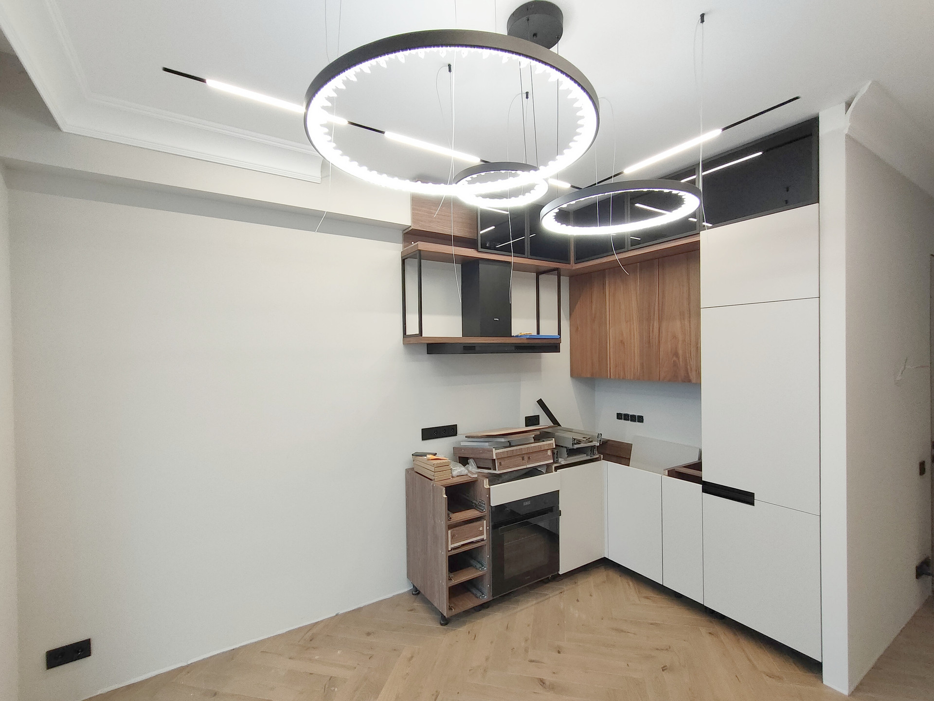 В квартире выполнен современный ремонт по специальному проекту, с использованием дорогих и качественных материалов: встроенная техника Korting (Германия): стиральная/сушильная машина, электроплита, духовой шкаф, вытяжка, посудомоечная машина. Напольное покрытие - паркетная доска. Кондиционер.