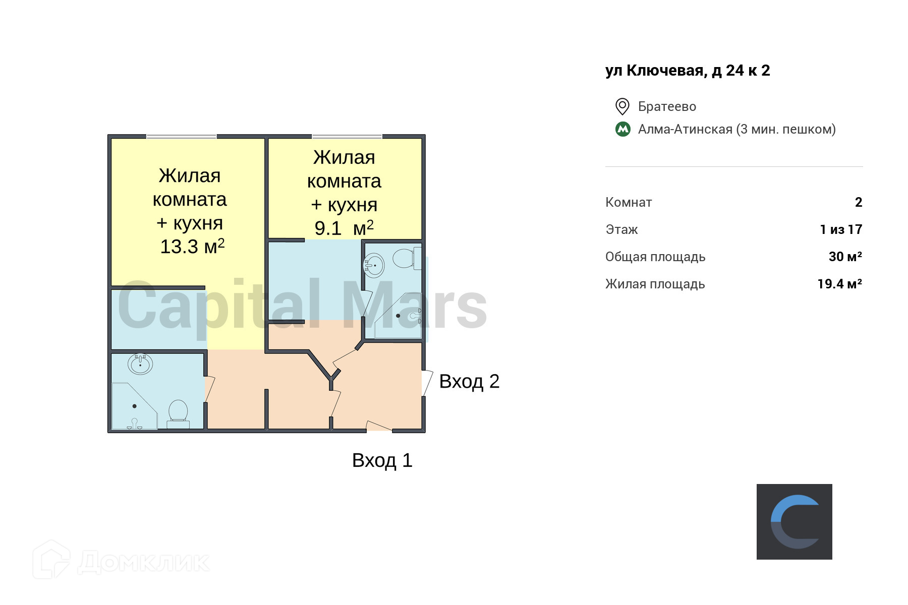 - Свободная продажа, один собственник.