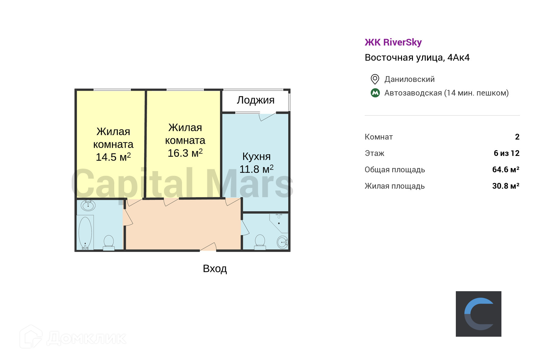 Общая площадь 64.6 м2