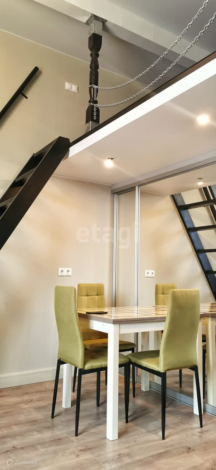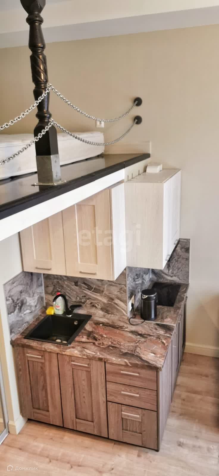 Студия расположена на втором этаже, в ней с комфортом может разместиться семья из ЧЕТЫРЕХ человек просторный первый уровень - 22,9 м2, большой встроенный шкаф-купе, уютная зона кухни.
