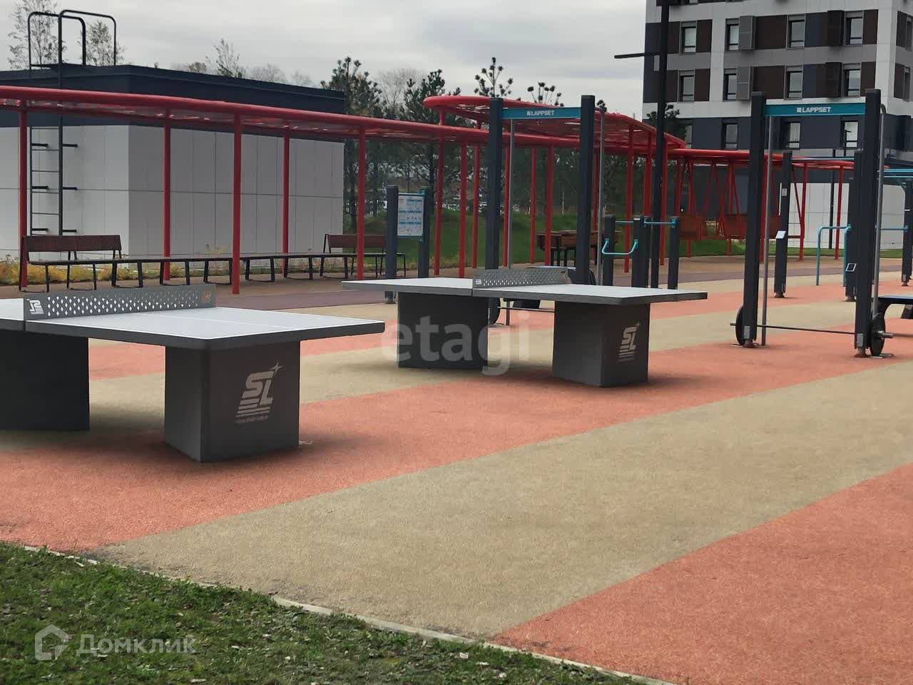 На огороженной территории во дворе множество спортивных тренажеров на любой вкус. На первых этажах комплекса расположены пункты доставки, сетевые продуктовые магазины, аптеки.