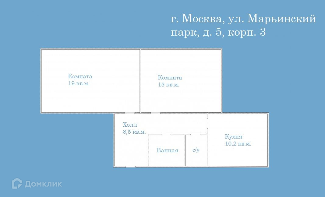 2-комнатная квартира, 58.3 м2, этаж 1 / 14, на продажу в Москве, улица Марьинский Парк, 5к3