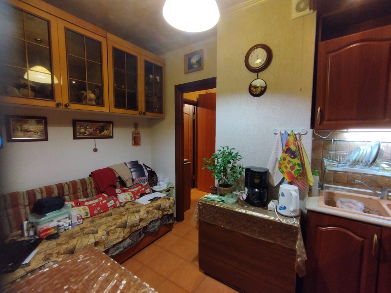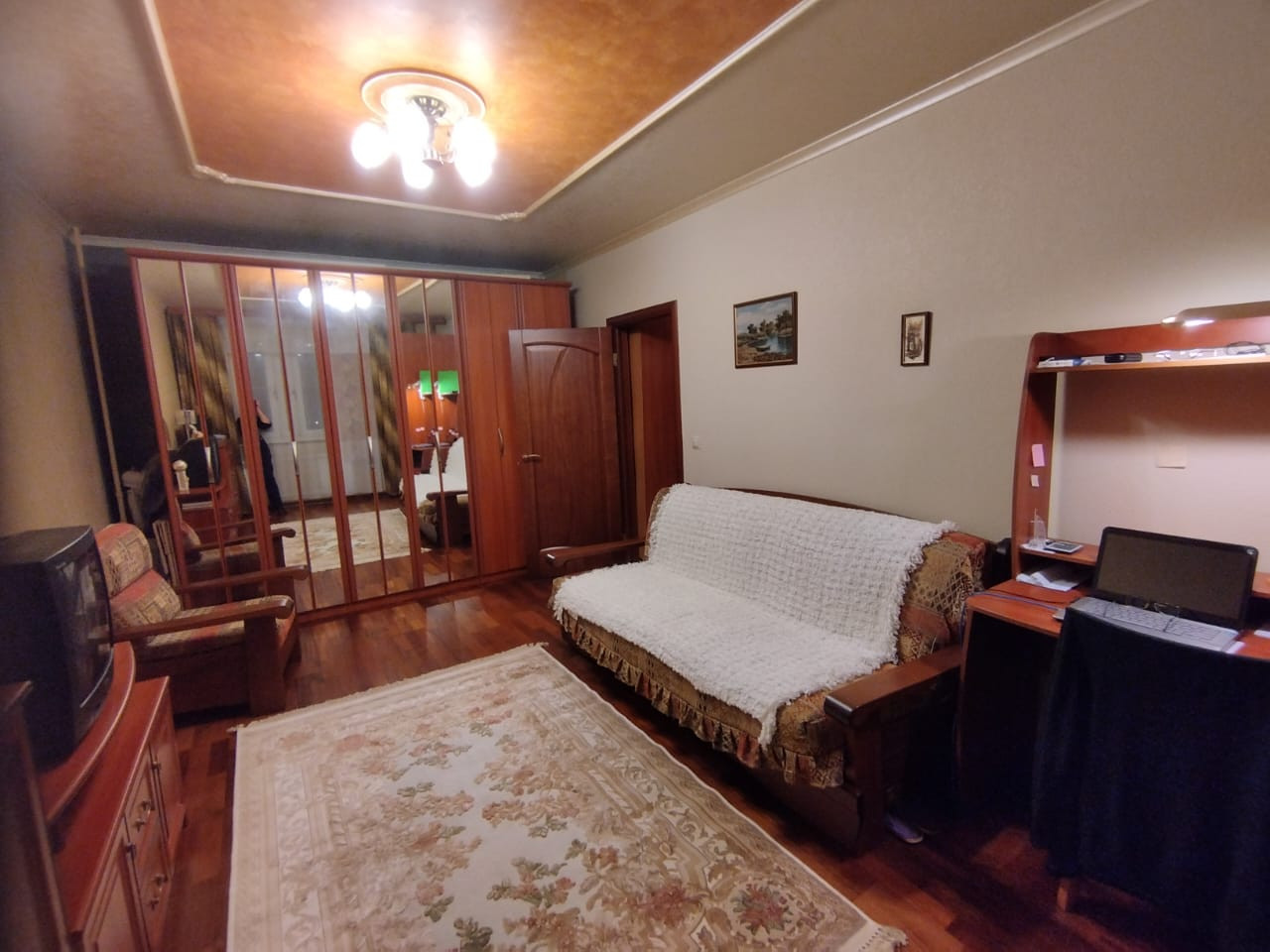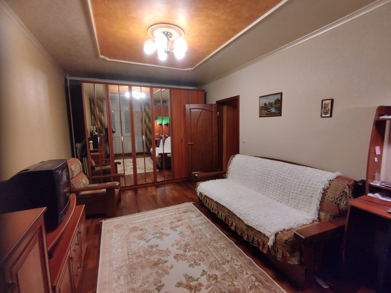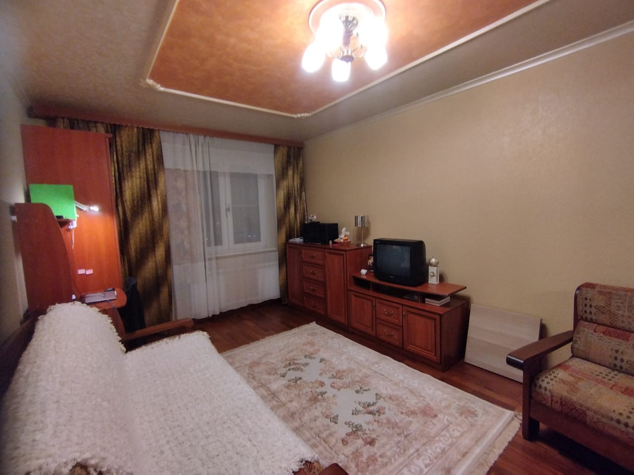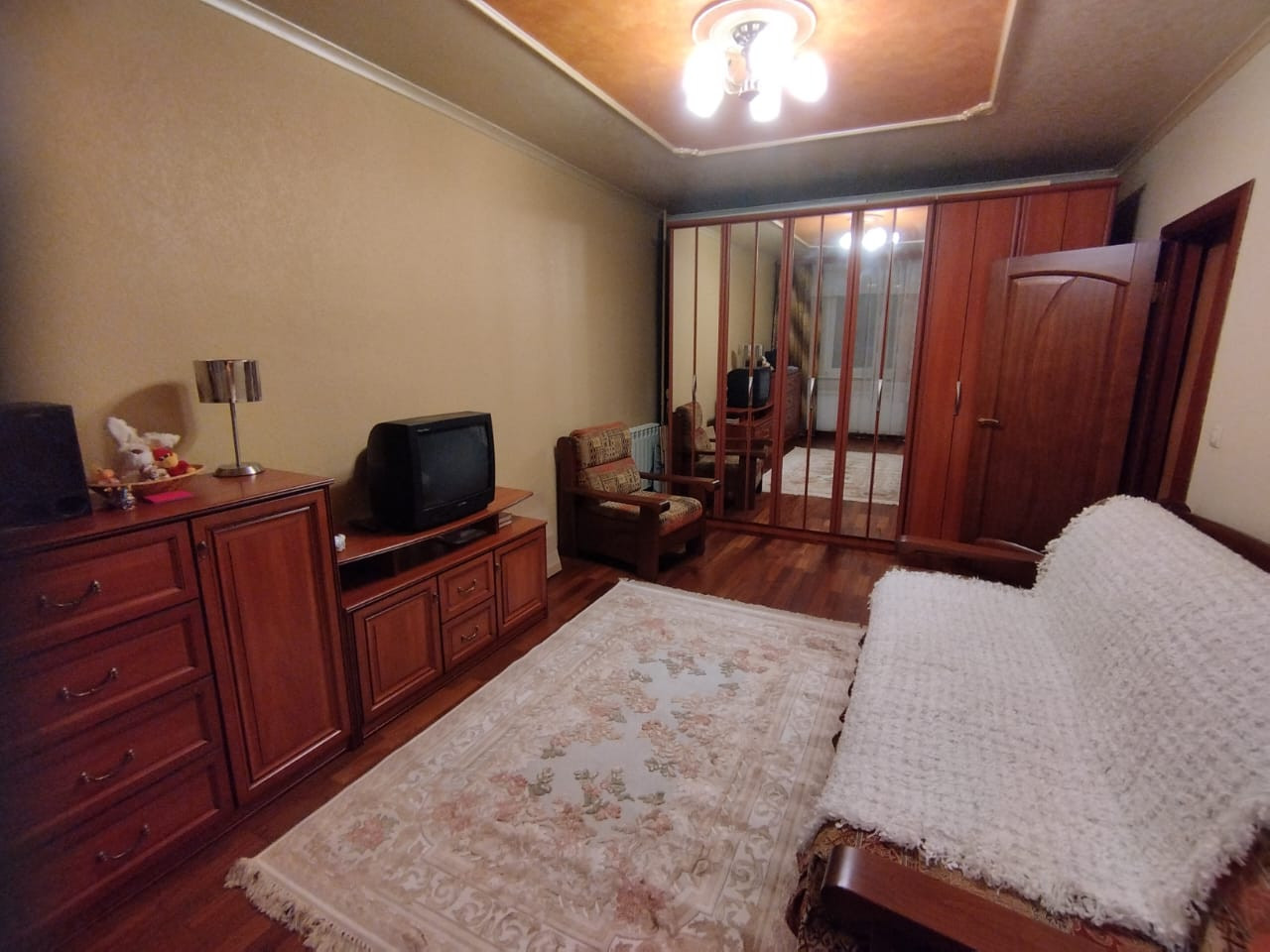 Квартира уютная и тёплая.  В кухне установлен кухонный гарнитур, из кухни выход на застеклённый балкон обшитый вагонкой.  В комнате установлены три радиатора центрального  отопления, мебель остается  по договоренности.   Санузел совмещённый.