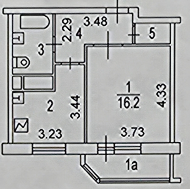 Балкон, лоджия 1 балкон