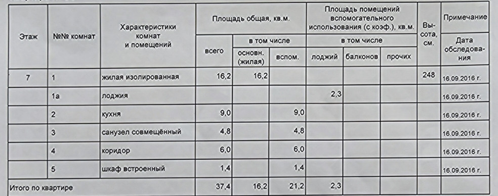 Общая площадь 39.7 м2